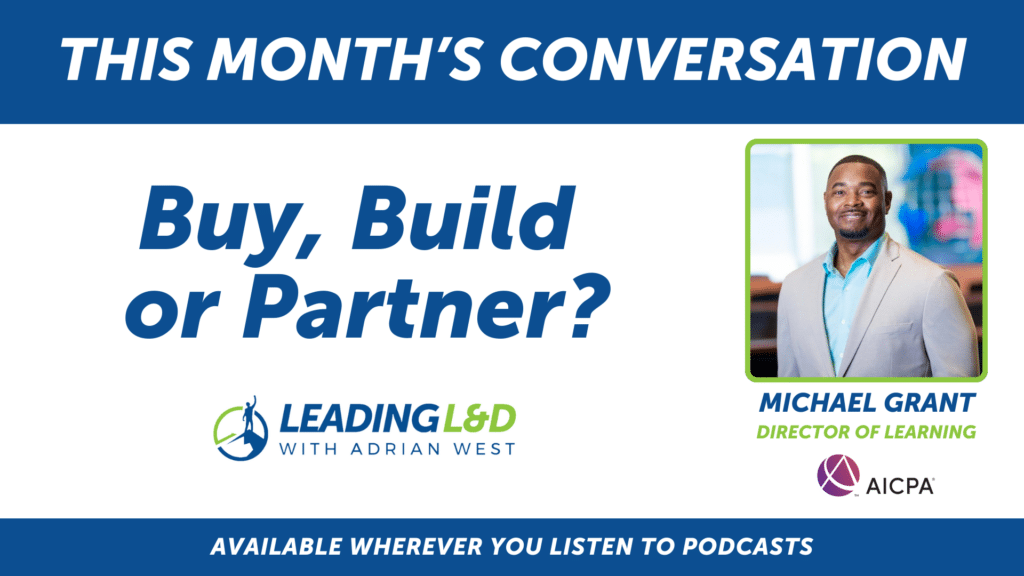 Because L&D is a profit-center for the Durham-based AICPA, Michael brings a unique perspective on the Buy, Build or Partner decision process, as he seeks to create the best, up-to-date training content while keeping an eye on the bottom line.
